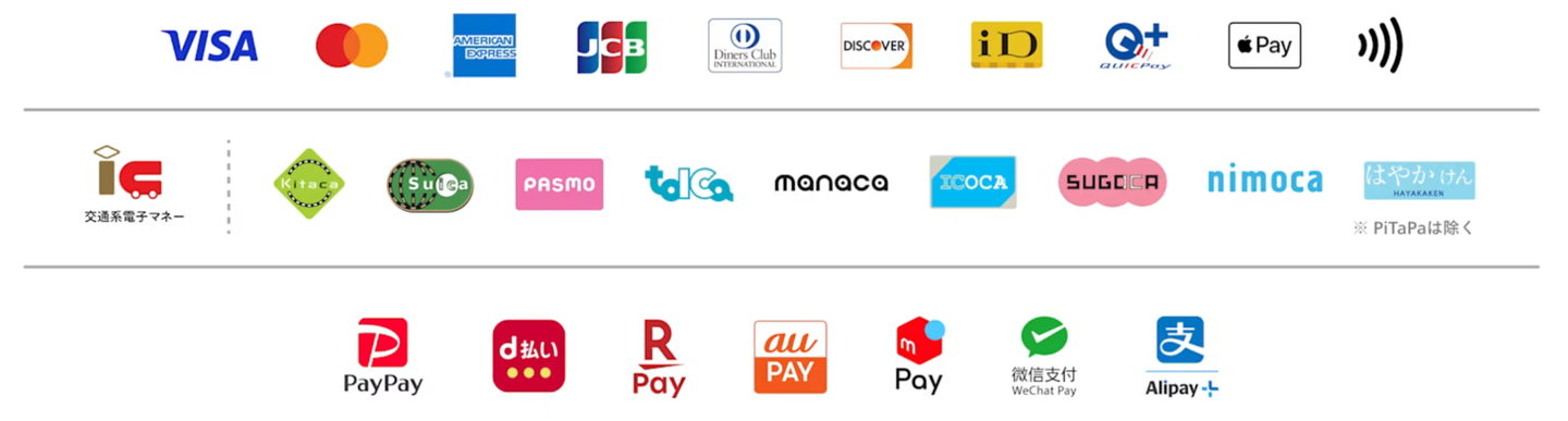 当店でのお買物(店頭/配達)には、クレジットカード、電子マネー、QR決済が使えます。